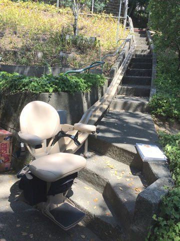 This installation features a top 180 degree park position. In this case, the park was situated further off the stairs, as the user has some balance issues. This also allows care-givers more room around the lift to assist the rider on and off the lift.